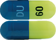 View 21 duloxetine 60 mg. 60 mg capsule blueyellow imprinted with Lilly 3237 60 mg. Begin treatment at 30 mg once daily for 1 week to allow patients to adjust to duloxetine delayed-release capsules before increasing to 60 mg once daily. Some patients may respond to the starting dosage.